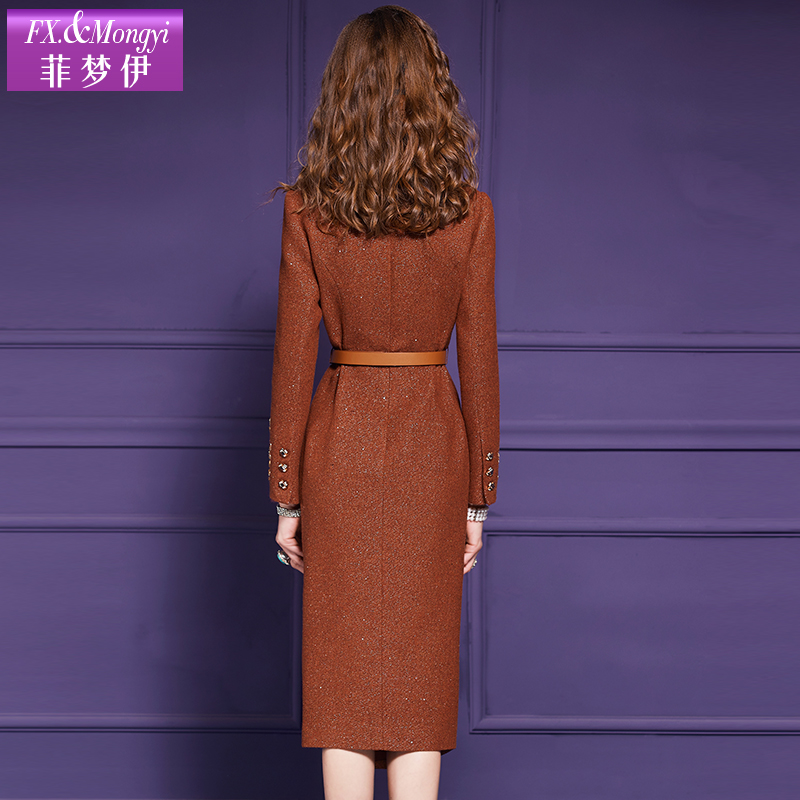 裙子 高端优雅气质加厚修身 菲梦伊含羊毛亮片西装 毛呢连衣裙女秋季