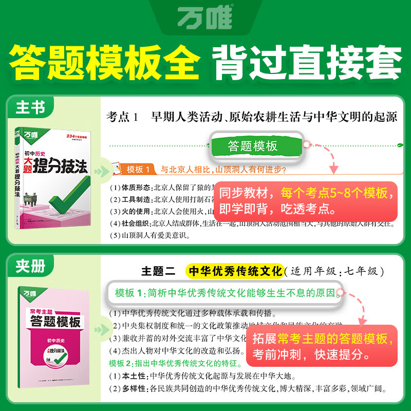 2026万唯初中小四门答题模板大题提分技法八九七年级上册道法政治历史地理生物基础知识解题思维方法大全 初一二万维中考答题模版