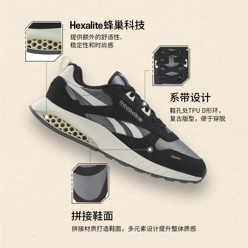 LEATHER熊猫黑白缓震蜂巢跑鞋 Reebok锐步官方24夏新男女情侣款