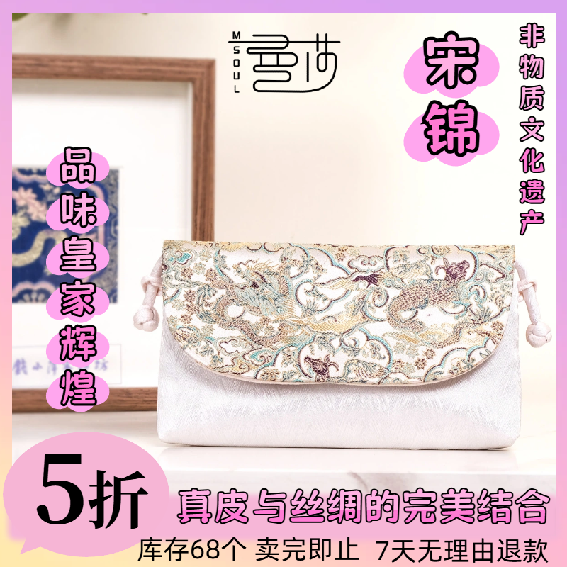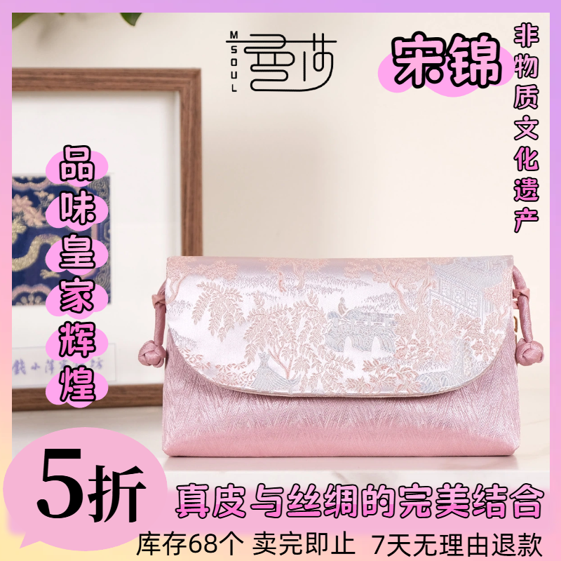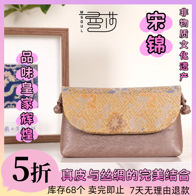 曼莎国风宋锦香云纱手提斜挎刺绣真丝牛皮新款 女包旗袍包包 新中式