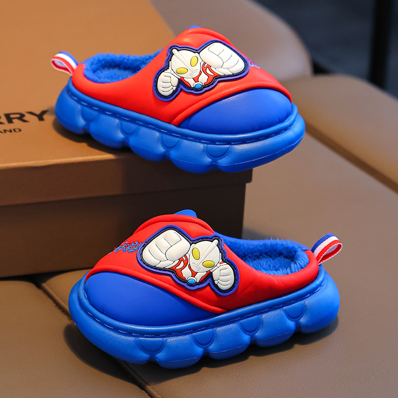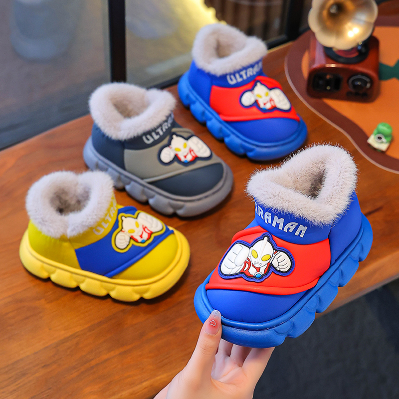 冬季 奥特曼儿童棉拖鞋 男童pu皮软底防滑加绒加厚保暖男女宝宝棉鞋