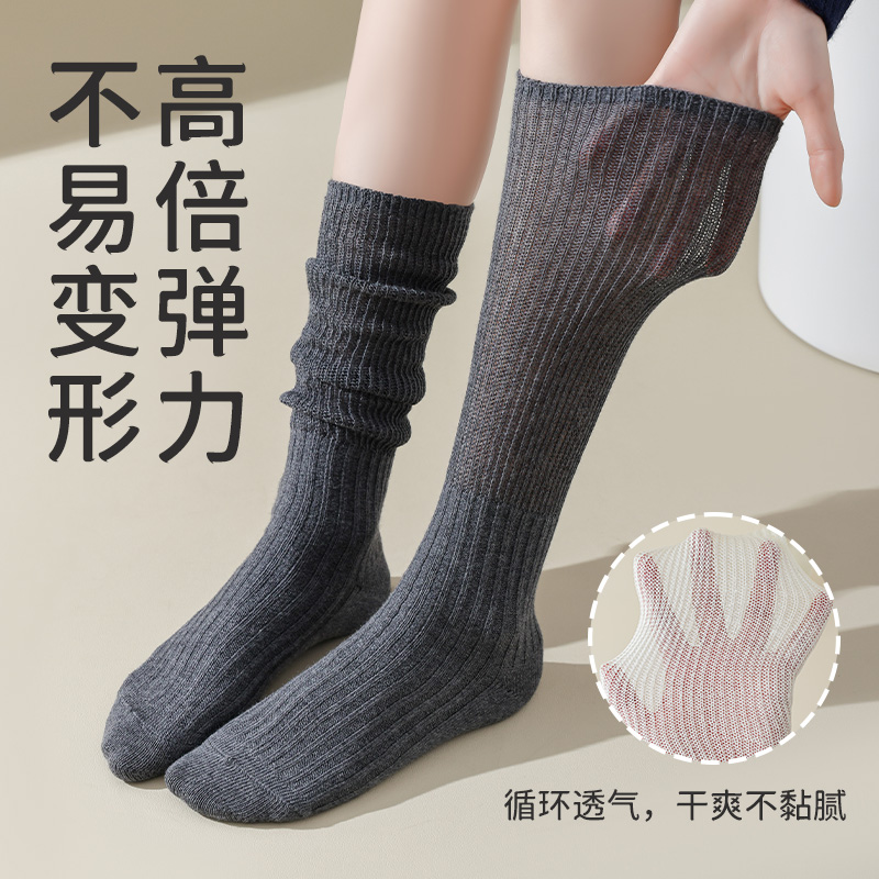 薄款 黑色袜子女中筒袜春秋季 堆堆长筒过膝袜jk压力瘦腿小腿袜夏季