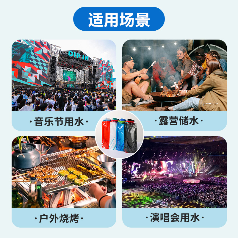 音乐节水袋一次性食品级户外便携饮水袋加厚折叠饮料演唱会软水袋