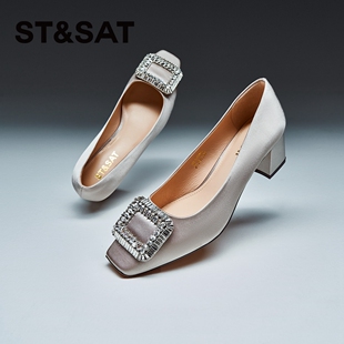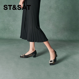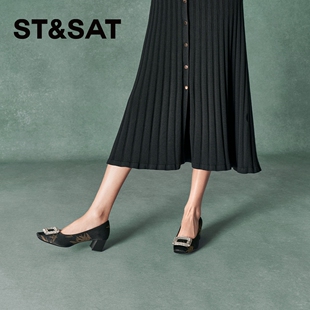 单鞋 羊皮浅口法式 千百度粗高跟鞋 异形跟职业通勤大码 静音系列