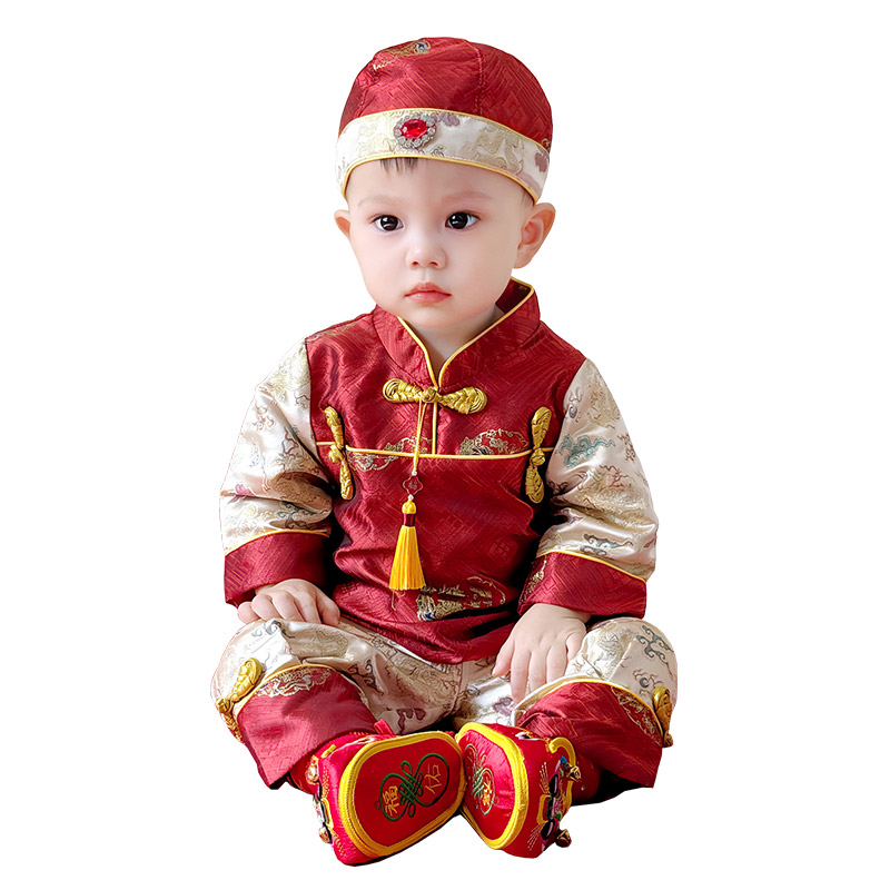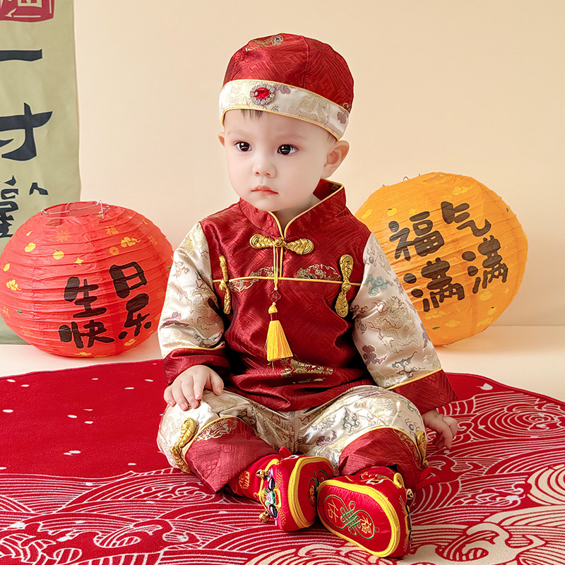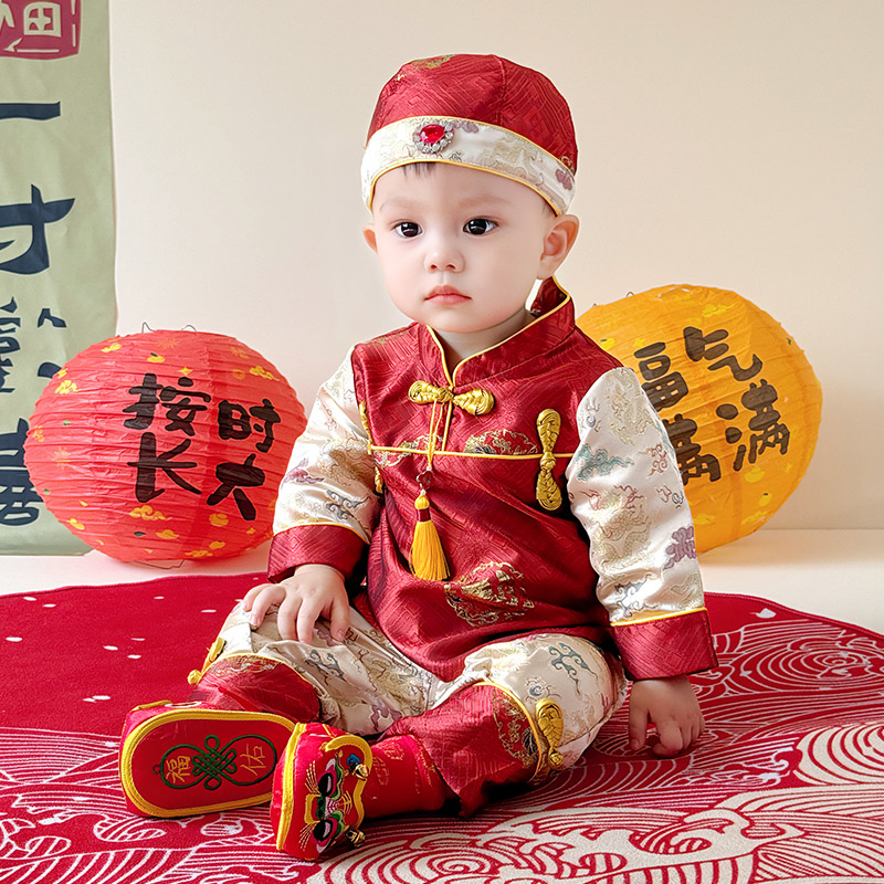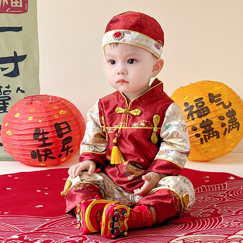 唐装 抓周服一岁冠衣新中式 礼服 童装 宝宝周岁礼服男婴儿百日秋冬款
