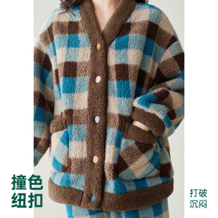 巨保暖 家居服套装 珊瑚绒睡衣女秋冬季 加绒加厚冬款 开衫 安之伴