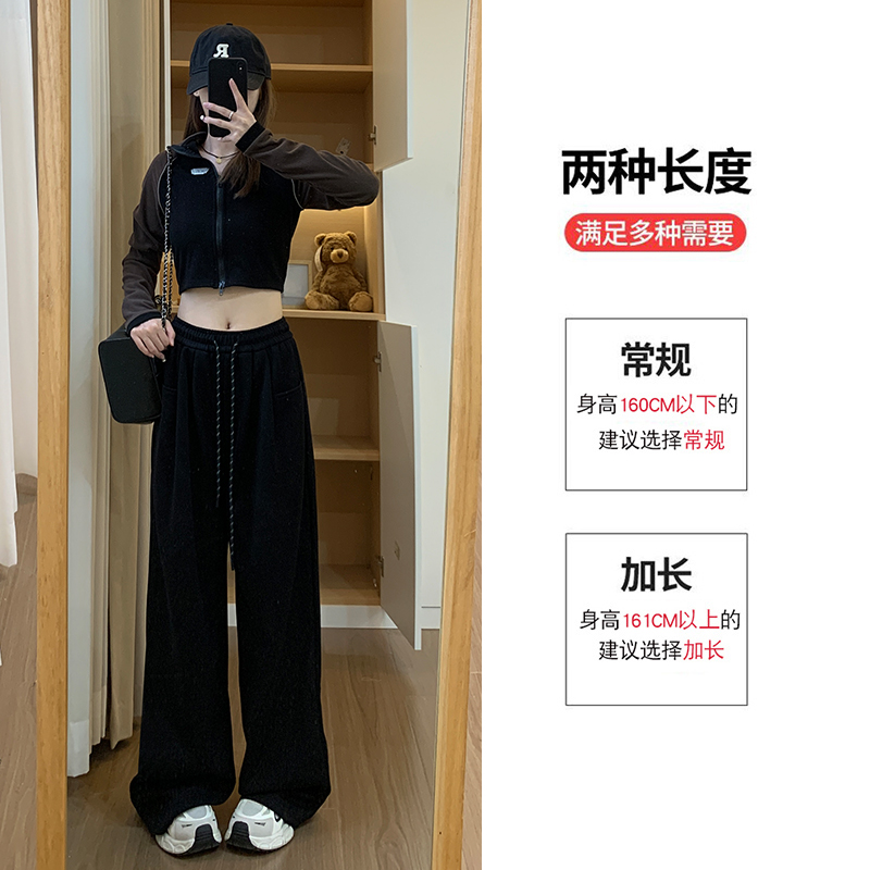 休闲运动长裤 高腰垂感显瘦宽松直筒卫裤 女春秋2025新款 白色阔腿裤