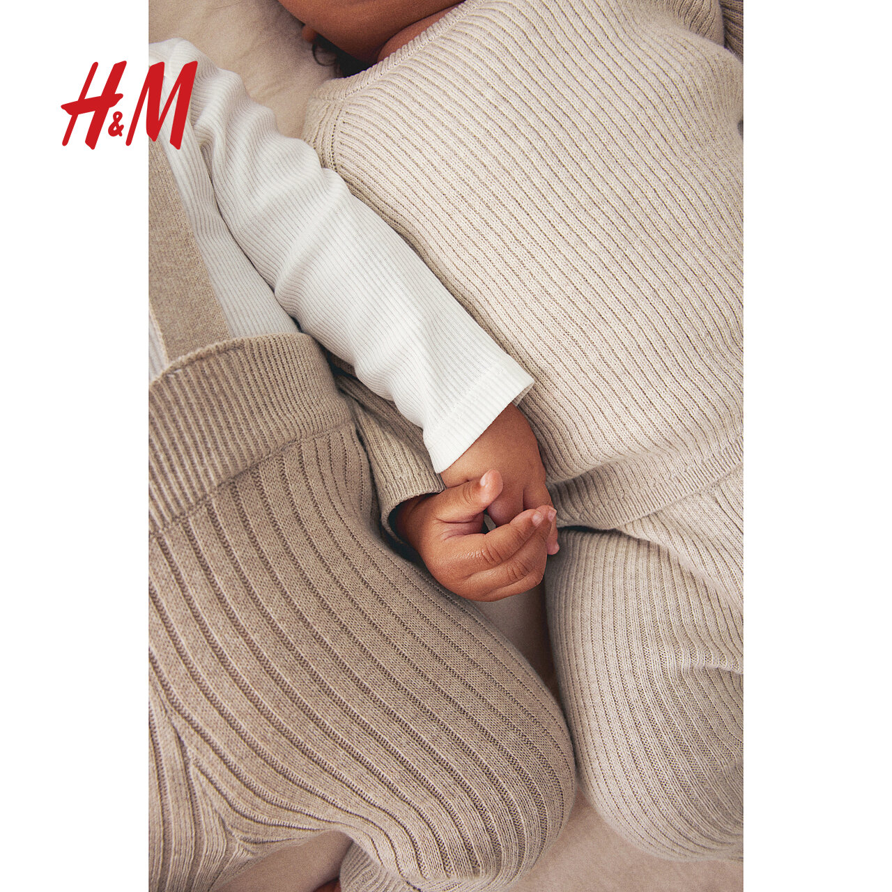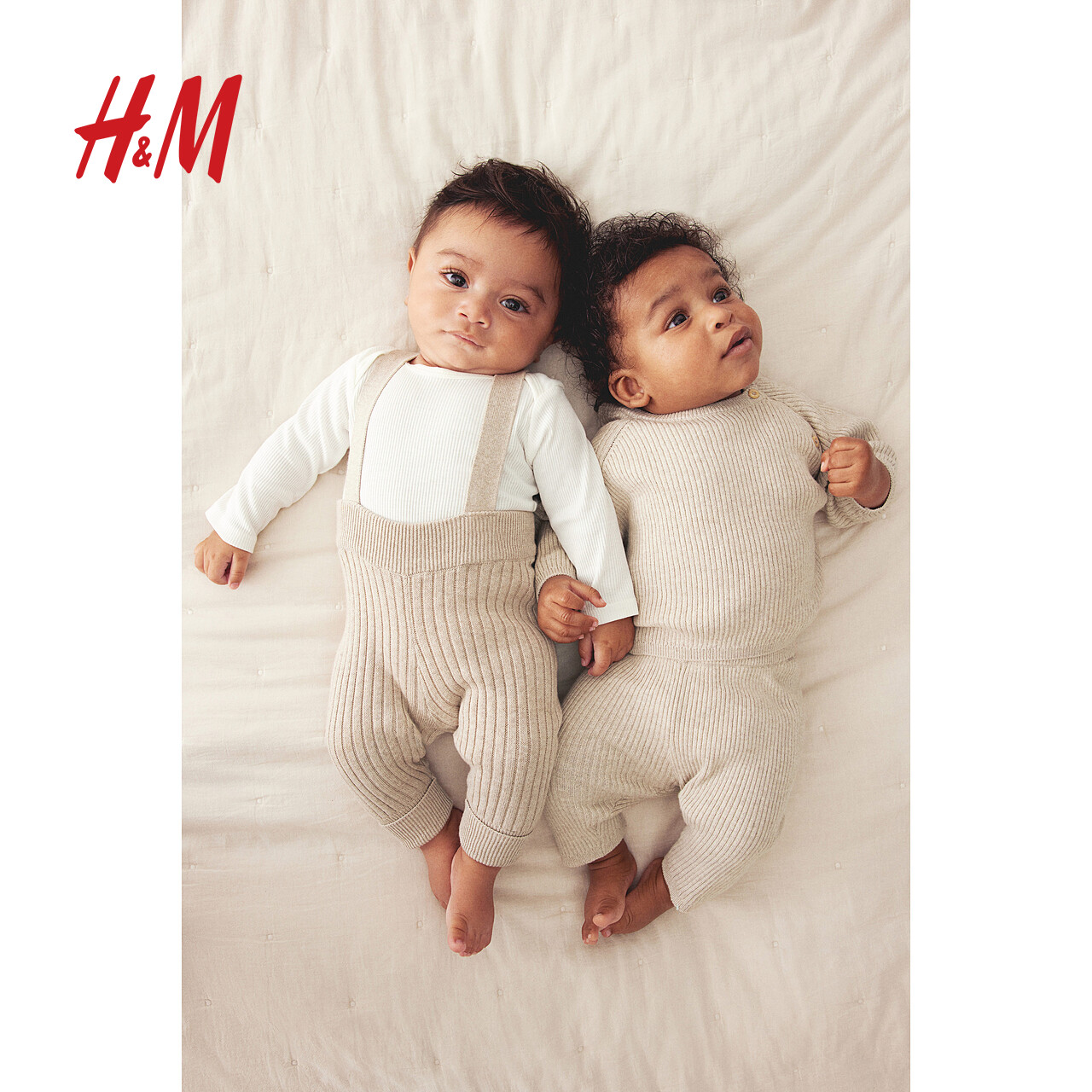 针织哈衣背带裤 HM童装 秋季 2件式 1212390 新生儿男婴女婴套装