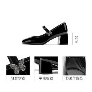 晚晚鞋 春夏小皮鞋 法式 单鞋 0017 大东粗跟玛丽珍女鞋 高跟鞋 2025新款