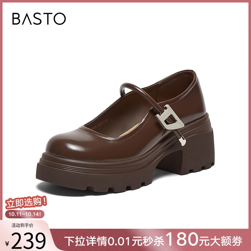 小个子女单鞋 皮鞋 W3875CQ4 厚底增高玛丽珍鞋 百思图春夏商场新款