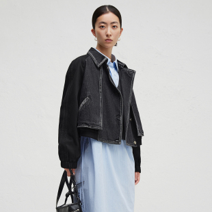 播奥莱商场同款 机车上衣BDR3WD1806 秋拼接短外套女灯笼袖