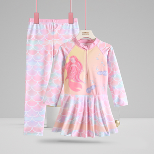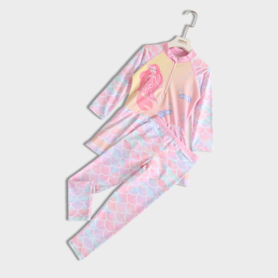 防晒游泳装 长裤 长袖 高端美人鱼IP儿童泳衣女孩女童中大童连体裙式