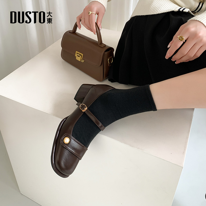 2025秋新款 厚底奶奶鞋 法式 浅口单鞋 复古方头小皮鞋 大东玛丽珍女鞋
