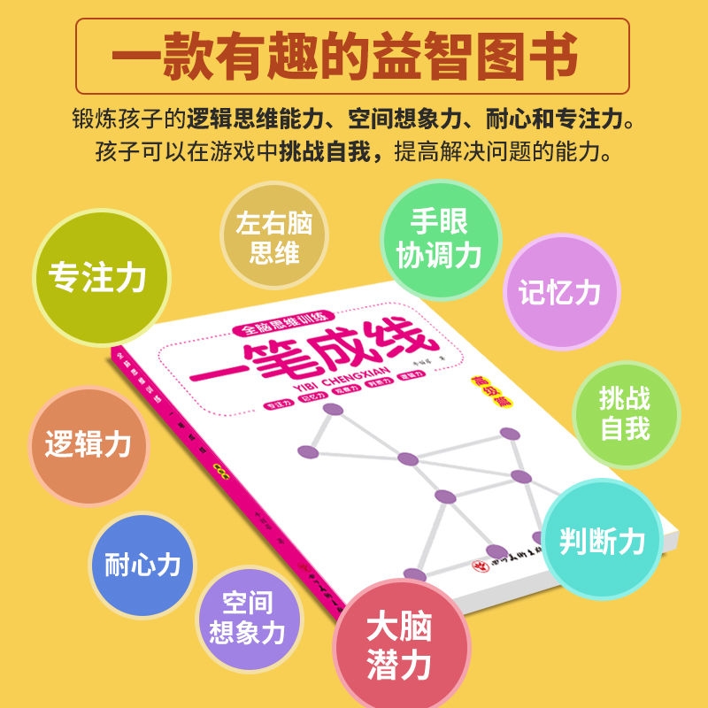 12岁儿童一笔成线专注力训练全脑思维开发逻辑训练智力开发益智游戏书家长孩子都爱玩一笔连完所有点图案专注力闯关游戏玩具