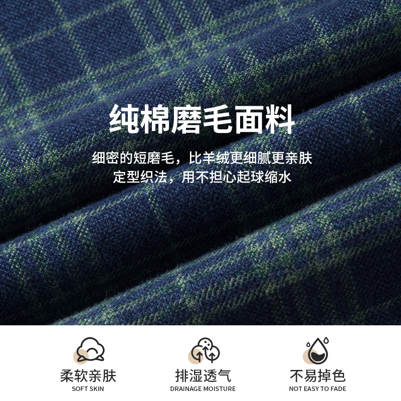 商务休闲长袖 罗蒙男士 衬衫 2025秋季 磨毛翻领格子衬衣 新款 纯棉