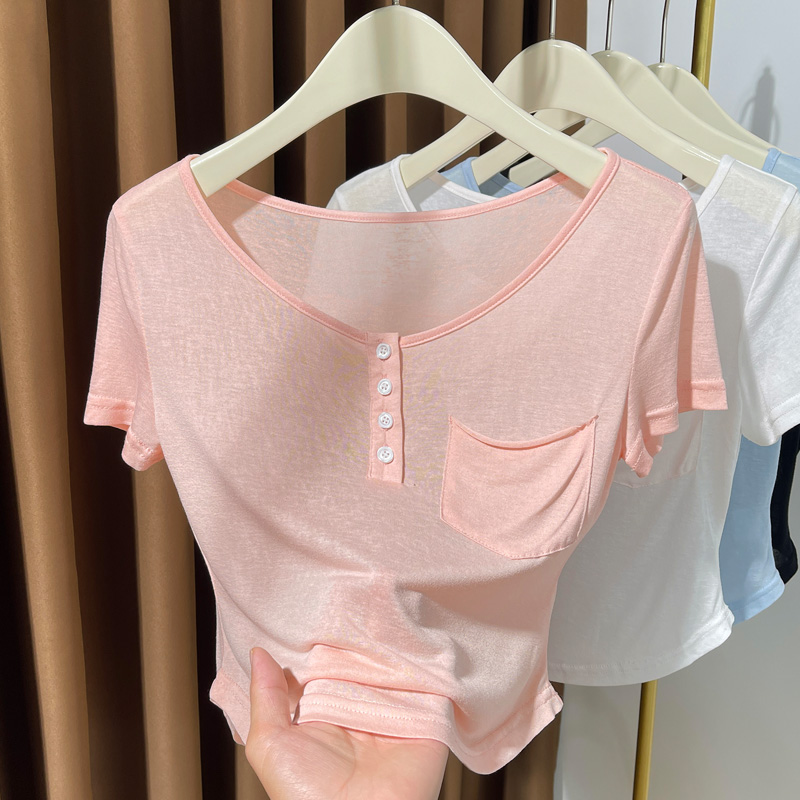 针织面膜短袖 透视打底衫 上衣 2025新款 凉感冰丝超薄软糯t恤女夏季