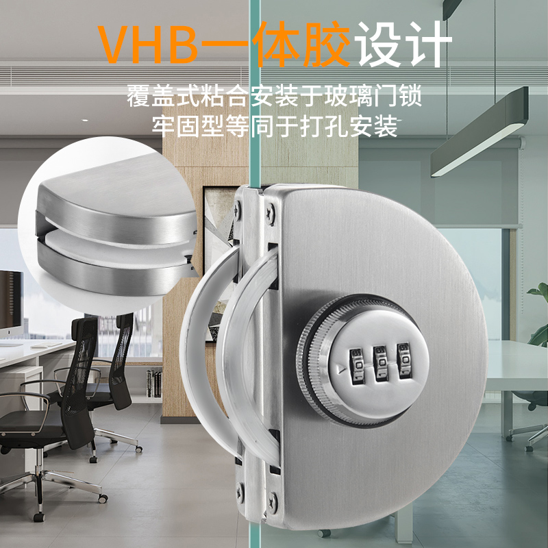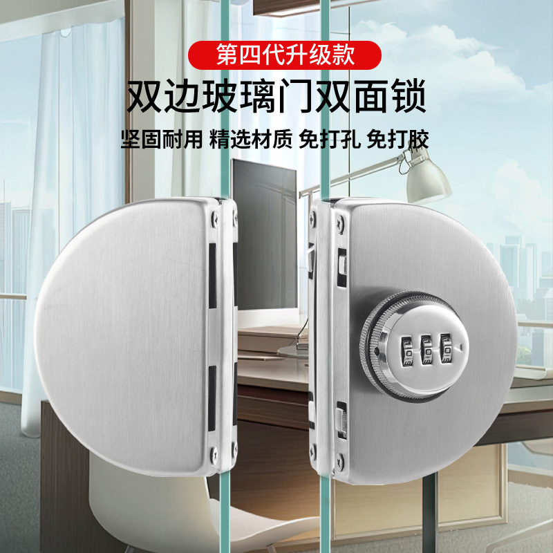 玻璃门密码 锁公司办公室智能机械锁商铺免开孔双开无框U型玻璃锁