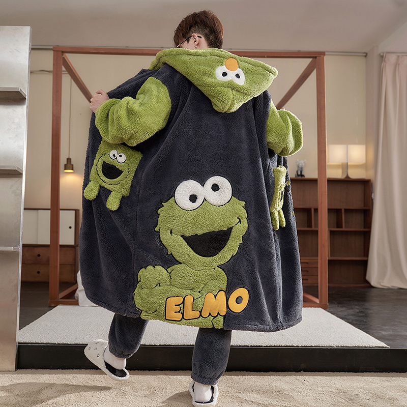 男童冬季 家居服 加厚珊瑚绒睡衣睡袍青少年皮卡丘法兰绒浴袍中长款