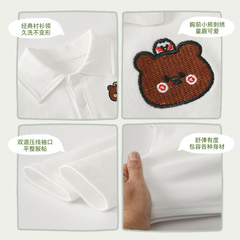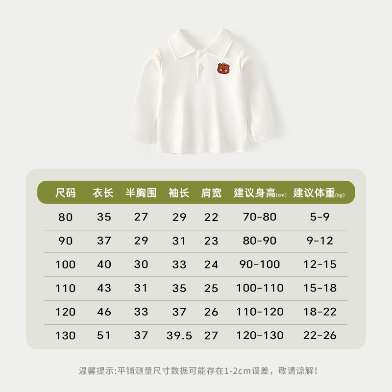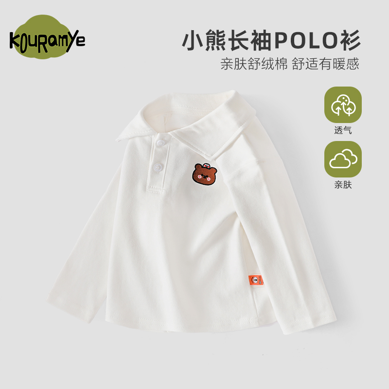 宝宝宽松a类打底衫 男童儿童polo衫 新款 纯棉翻领T恤2025春装 白 长袖