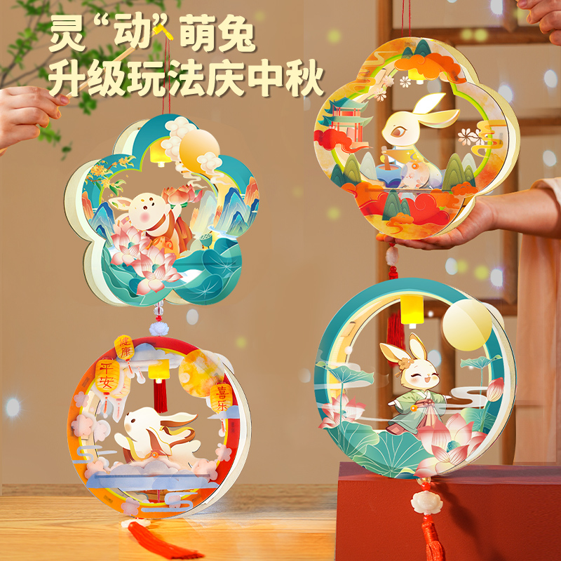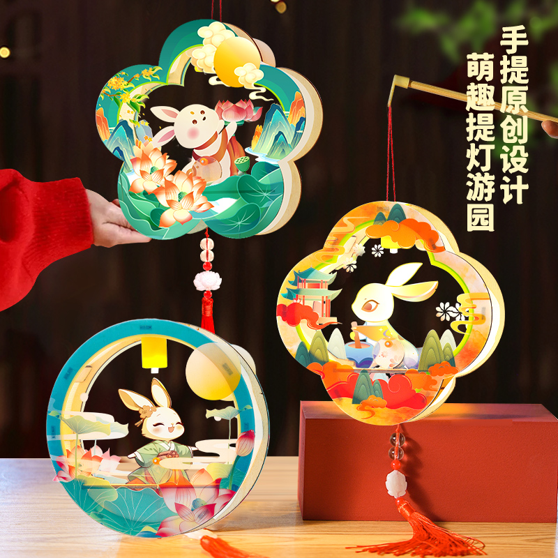 中秋节灯笼儿童手提花灯手工diy材料包2025新款 兔子八月十五玉兔
