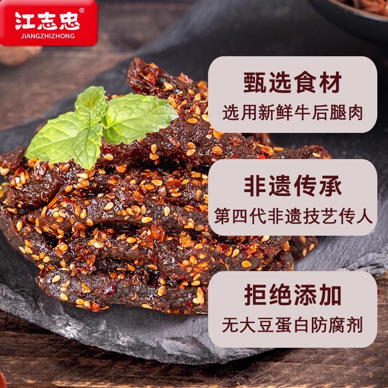 江志忠牛肉灯影牛肉丝风干牛肉风干鸡肉卤鸡爪辣子鸡开袋机制零食