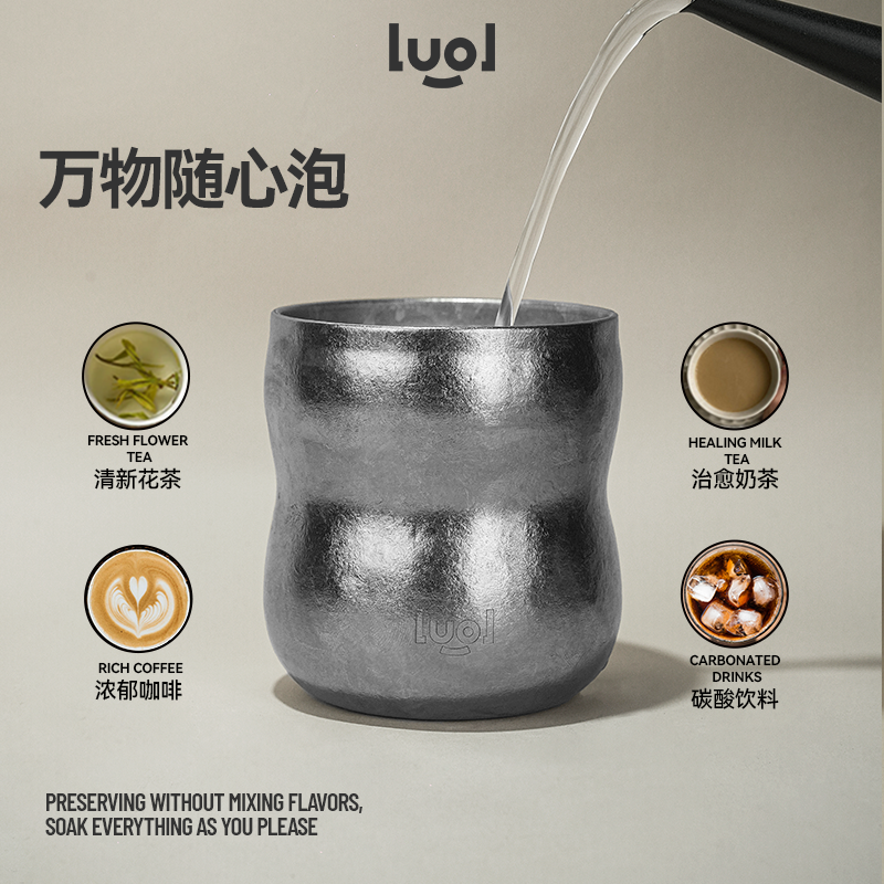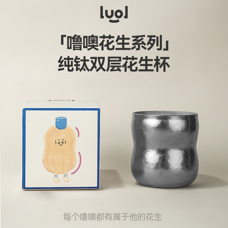 LUOL噜噢花生杯纯钛双层钛杯咖啡杯茶杯便携钛水杯生日礼物送女生