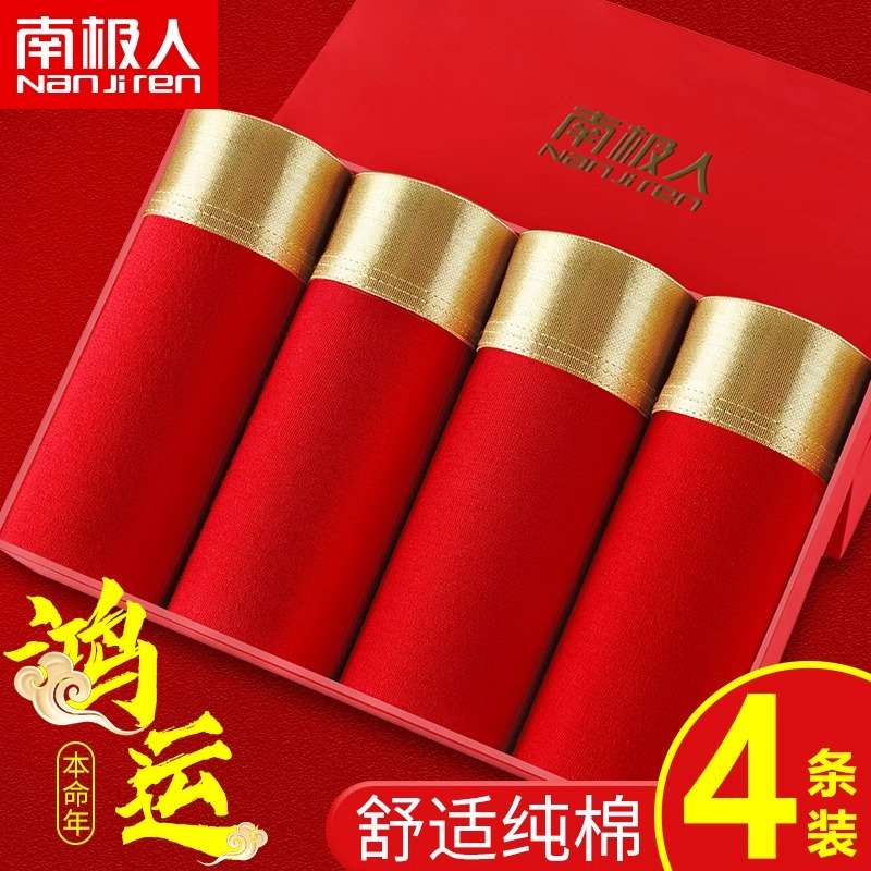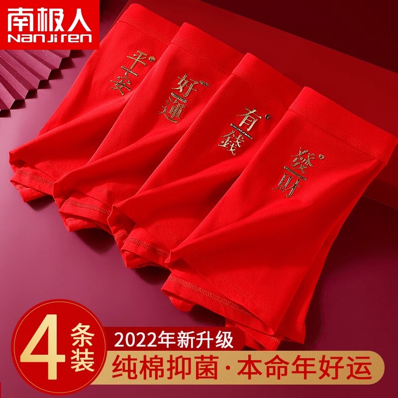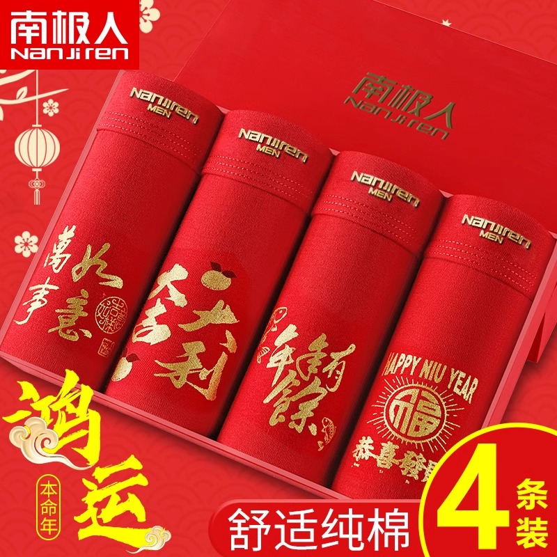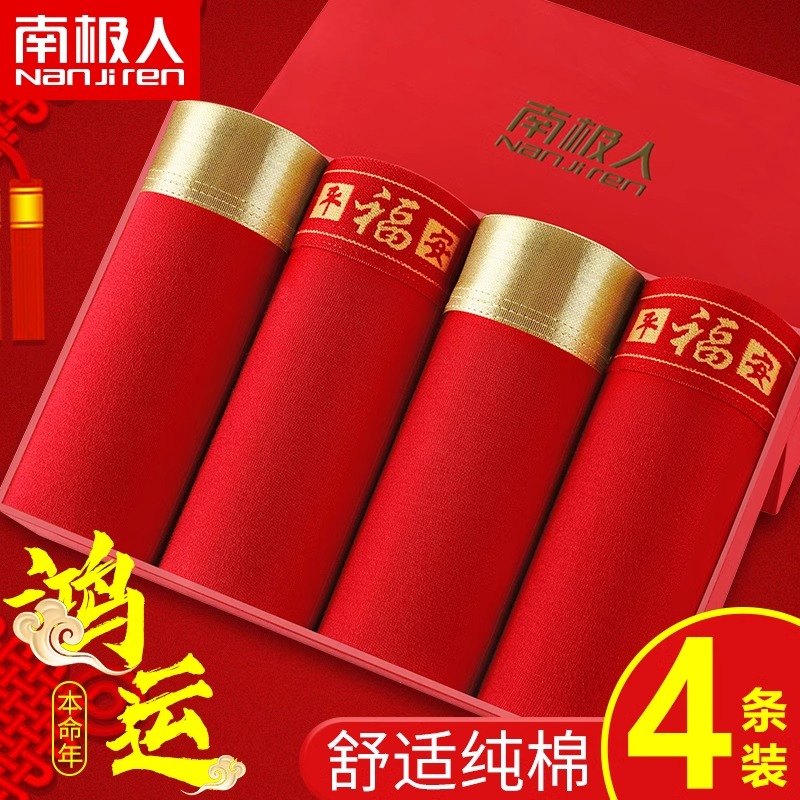 新年送礼平角裤 蛇年本命年内裤 衩大码 纯棉大红色结婚四角短裤 男士