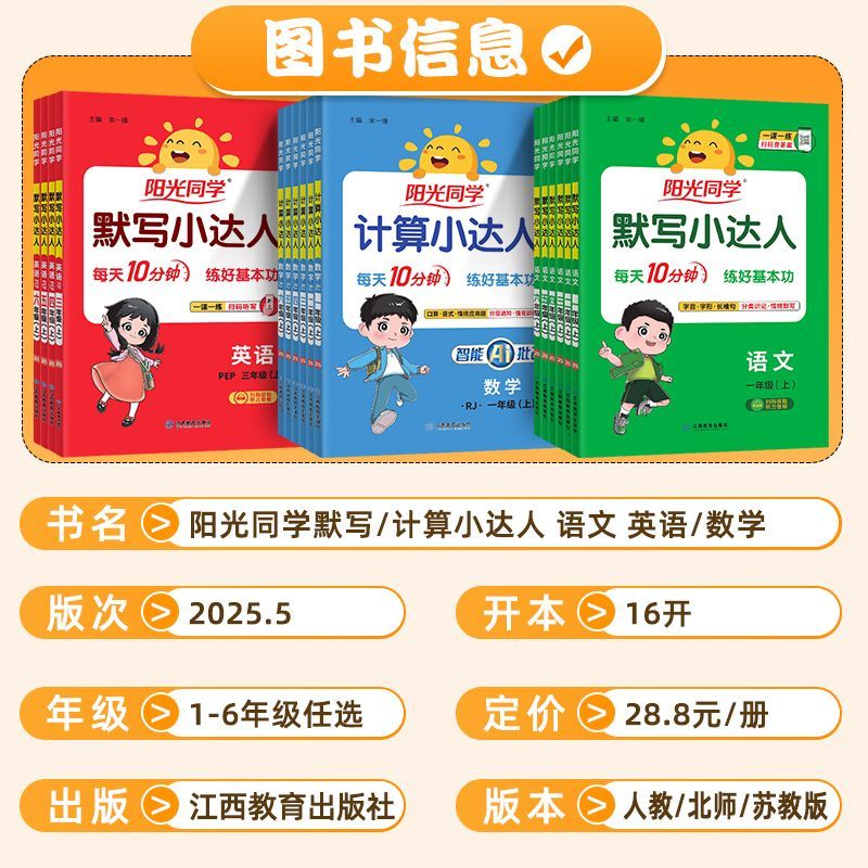 2025版 阳光同学计算小达人一二三四五六年级上册语文默写同步训练123456年级上册字词默写能手练习册小学人教版