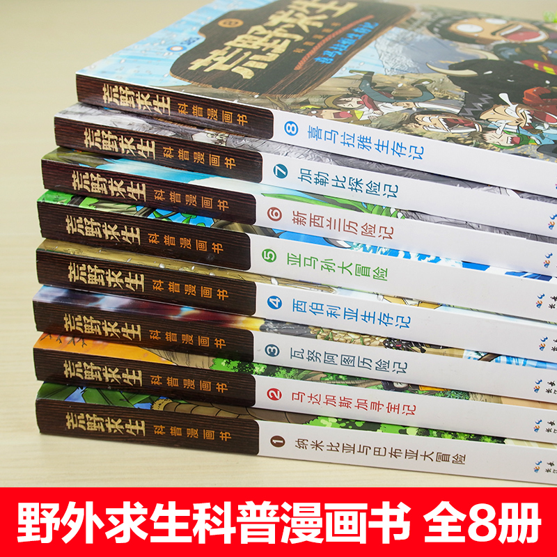 8册荒野求生漫画科普书全套幽默搞笑野外求生技能手册绘本小学生二三四五六年级课外书必读老师推荐 挑战故事书 阅读男孩女孩成长