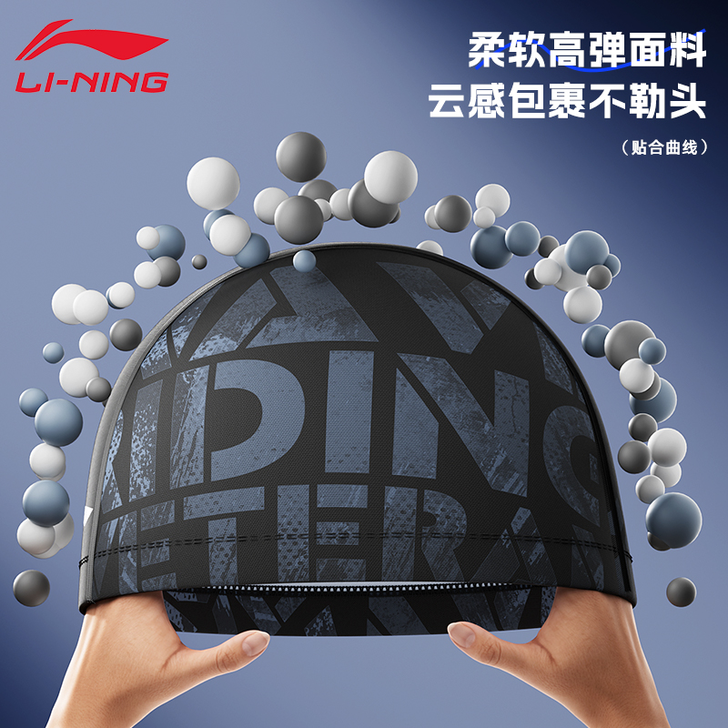 李宁泳帽男款 专业防水高弹不勒布料游泳帽女成人大头围 2025新款