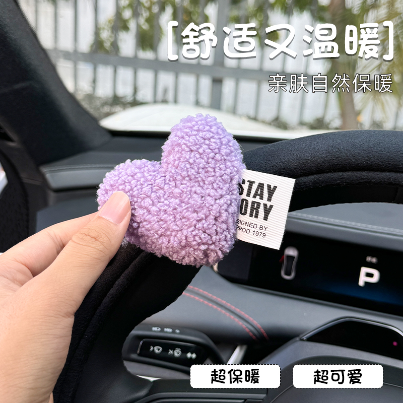用品 通用短绒车把套秋冬季 汽车方向盘套女款 冬天毛绒ins网红四季