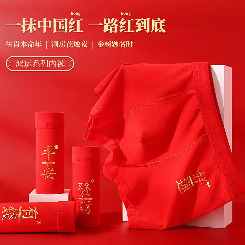 大红礼盒结婚四角裤 纯棉平角裤 抗菌腰带 内裤 本命年属蛇年好运男士