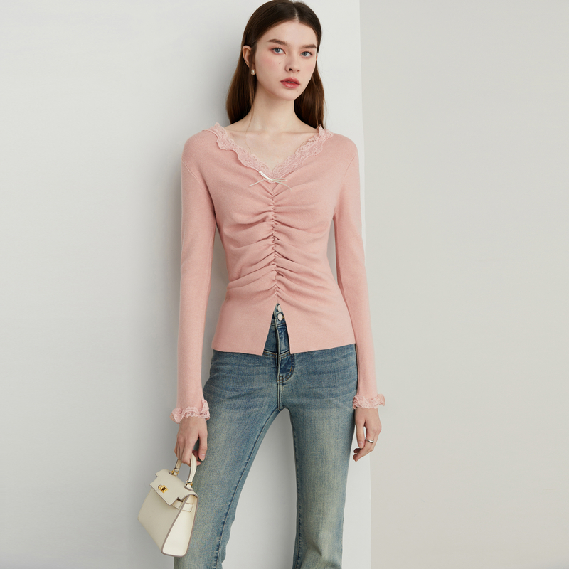 浅粉色毛衣针织衫 DPLAY 新款 2025年春季 流行洋气上衣女 惠品