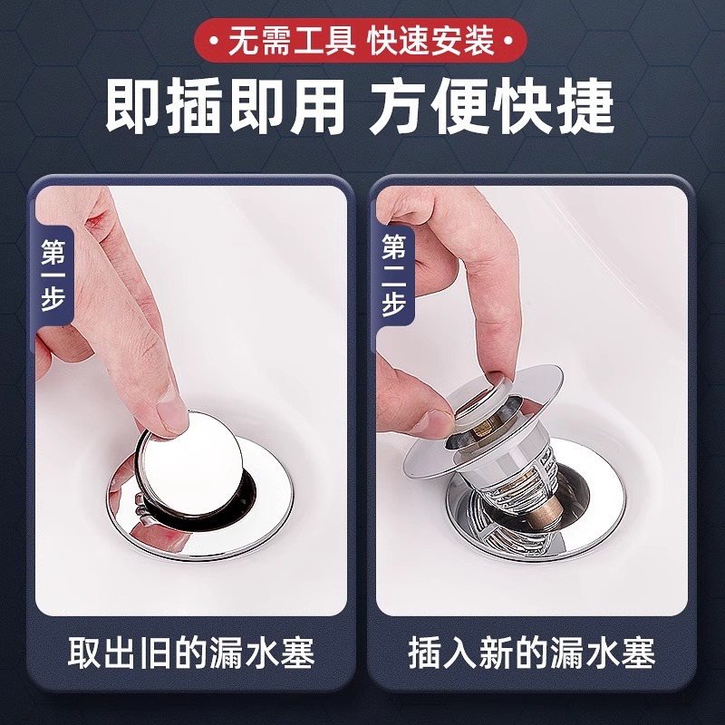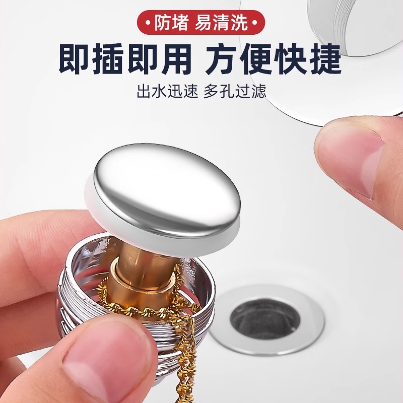 按压式 漏水塞家用洗手池洗脸盆下水器防堵面盆过滤网弹跳芯配件