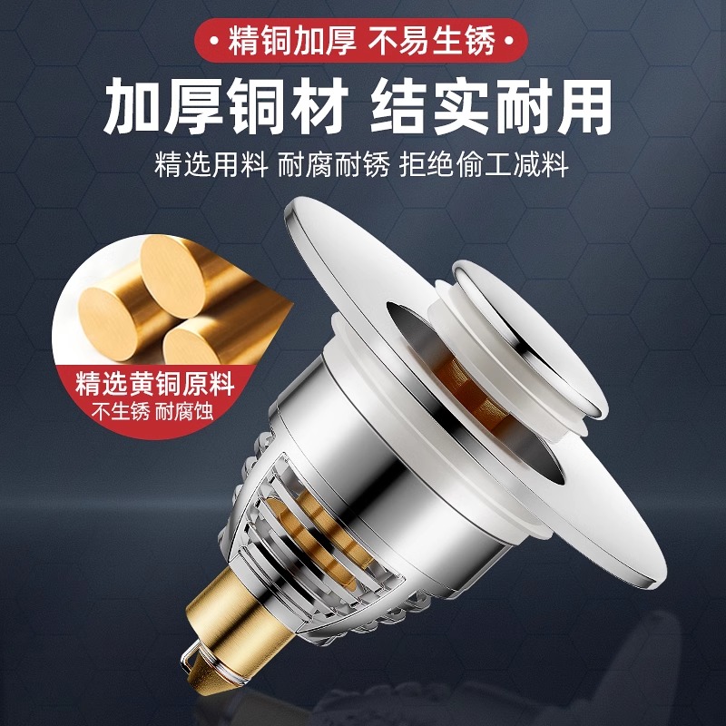 卫生间洗手盆漏水塞过滤防臭洗脸盆弹跳芯下水器配件按压式 面盆用