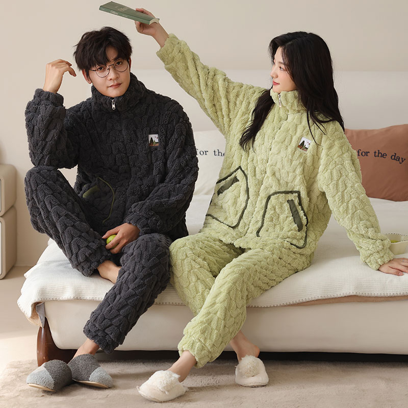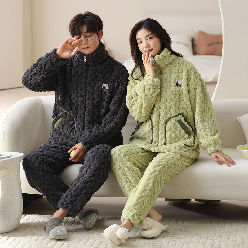 猫人睡衣秋冬款 加绒加厚法兰绒双面绒冬天可外穿保暖家居服 情侣款