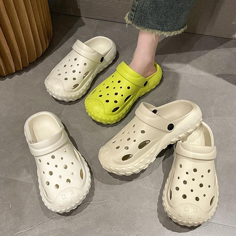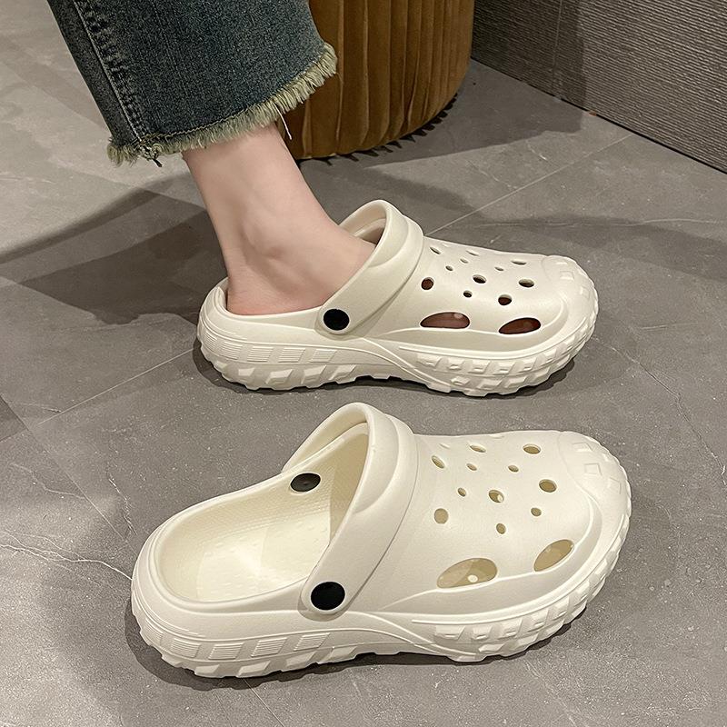 网红ins踩屎感沙滩防滑两穿凉鞋 爆款 女夏外穿2025新款 厚底洞洞鞋