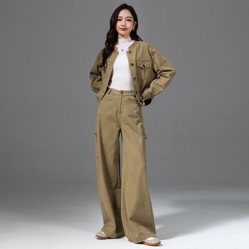套装 穿搭阔腿牛仔裤 时尚 外套女2025年春秋新款 短款 美拉德复古工装