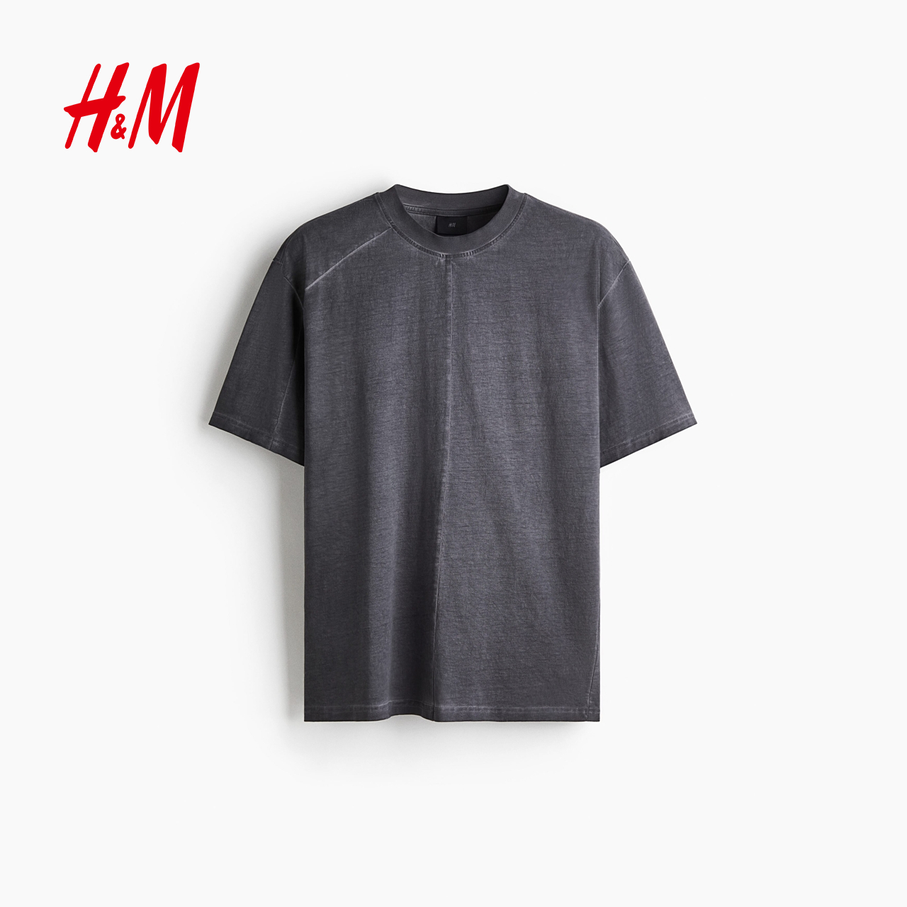 休闲通勤水洗罗纹圆领棉质短袖 新款 上衣1288881 T恤2025秋季 HM男装