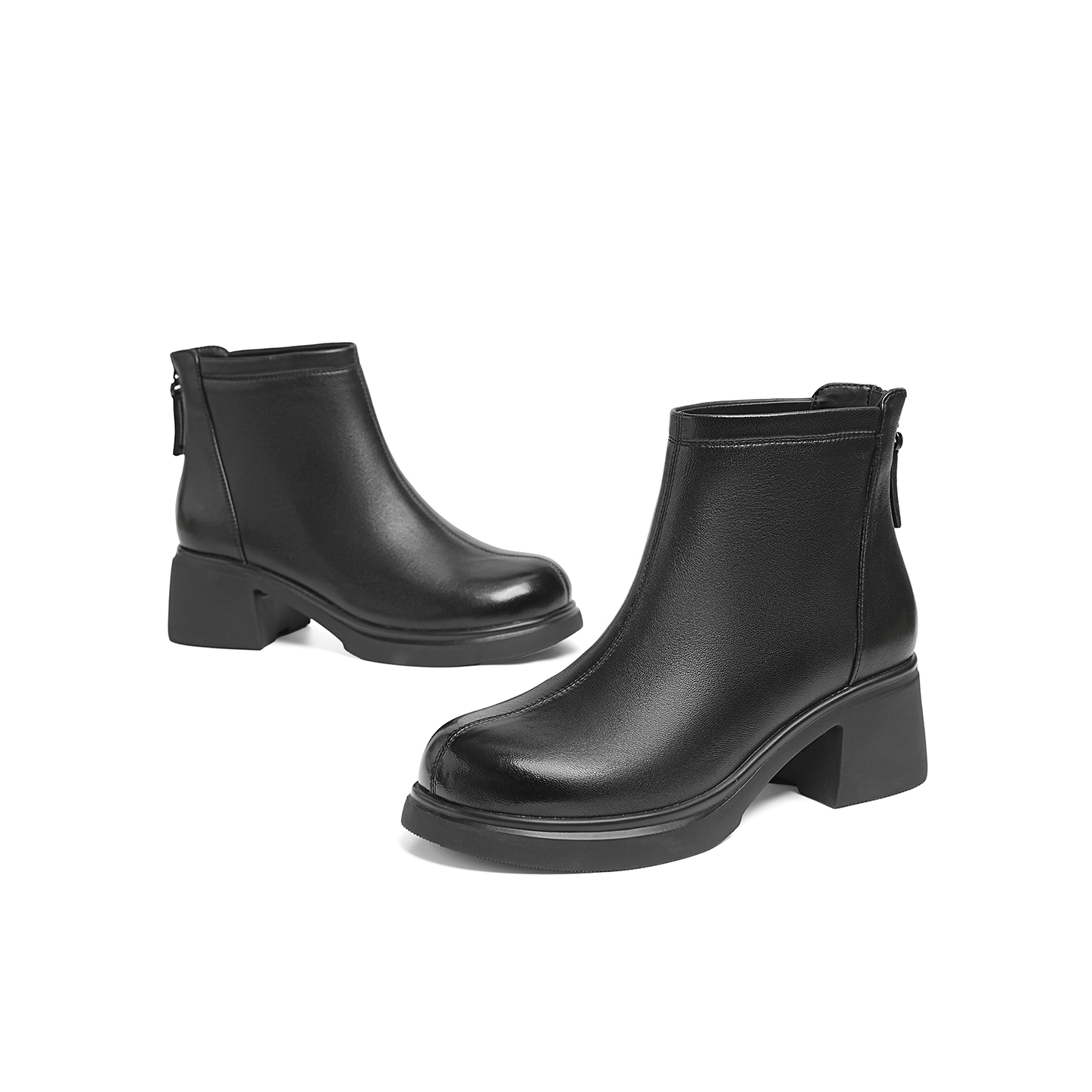 妈妈靴子 粗跟真皮中年女士皮鞋 红蜻蜓羊皮短靴女2025秋冬新款 女鞋