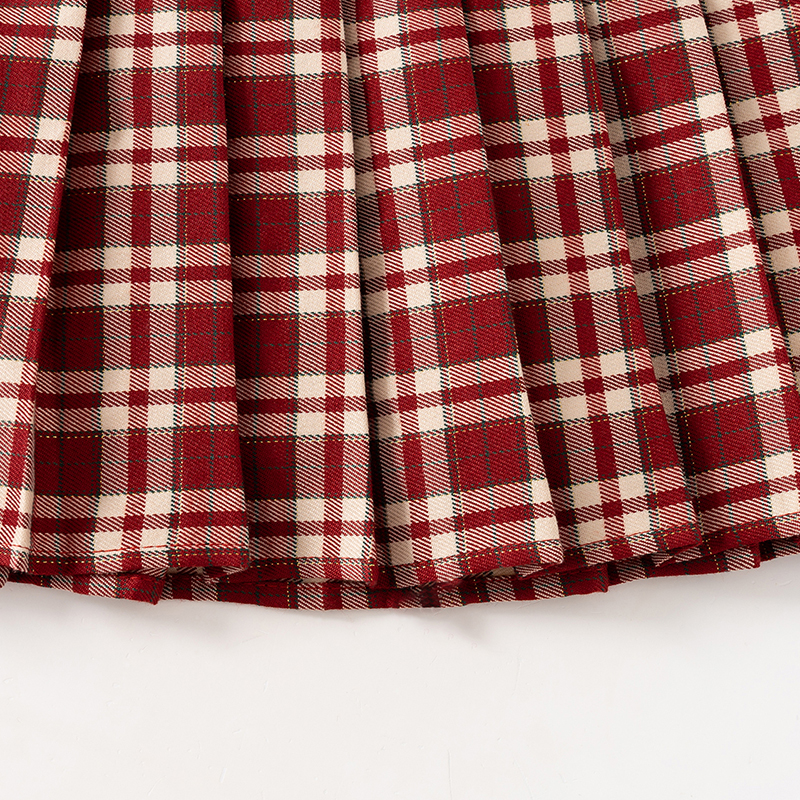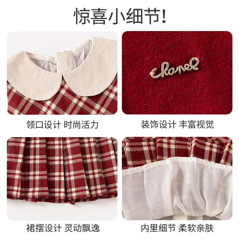 百搭学院风红色格纹衬衫 乔拉 新款 秋季 领连衣裙外套女 维尼礼盒