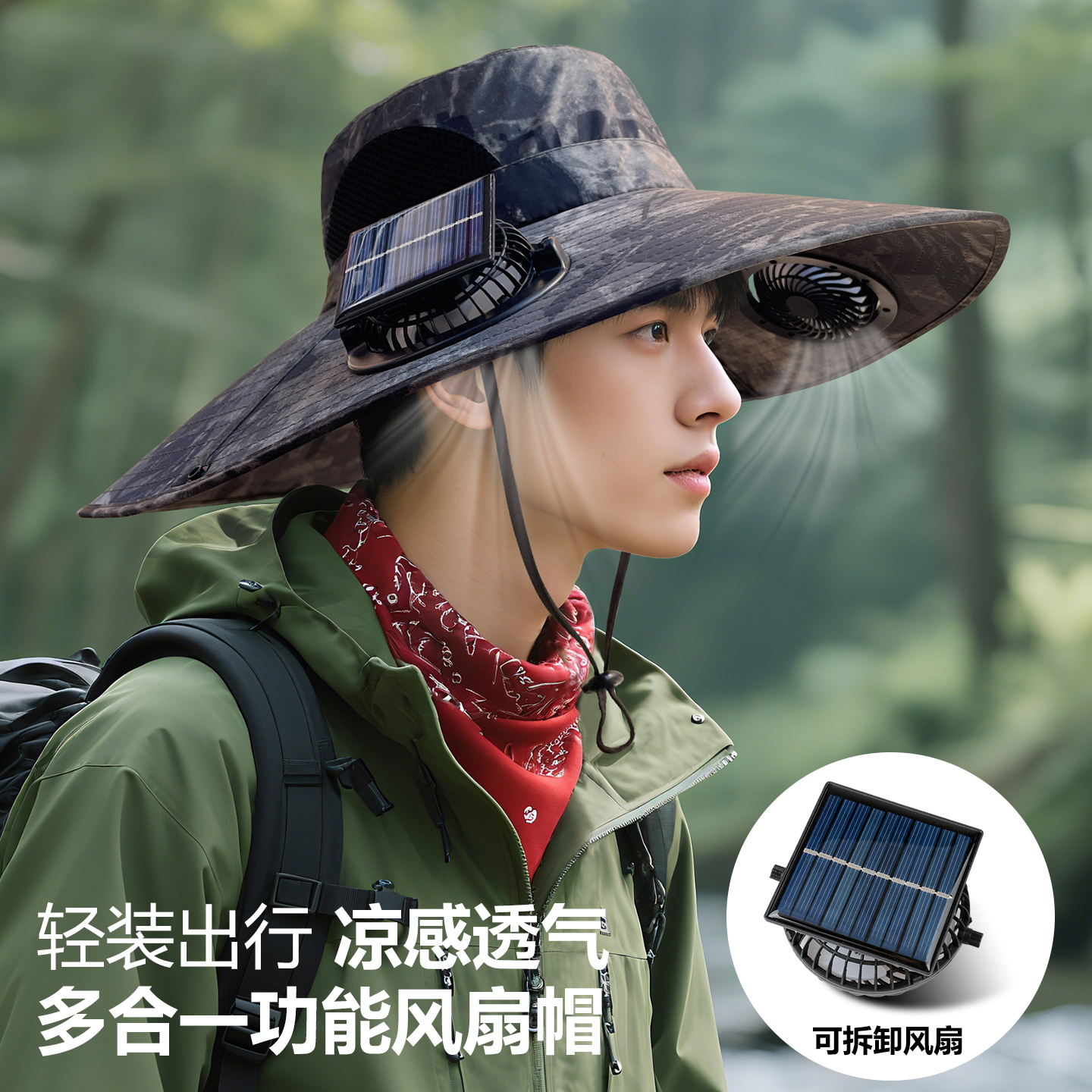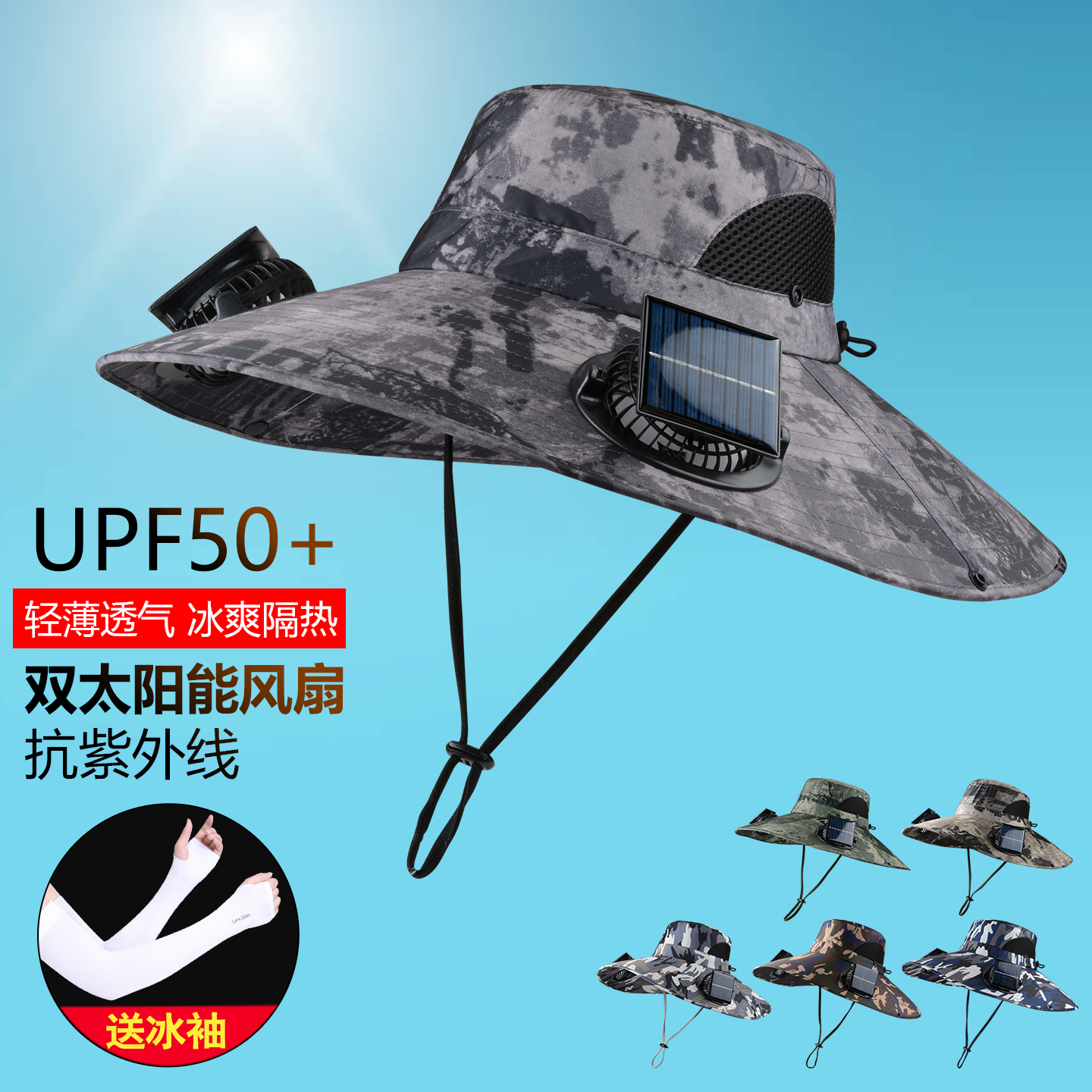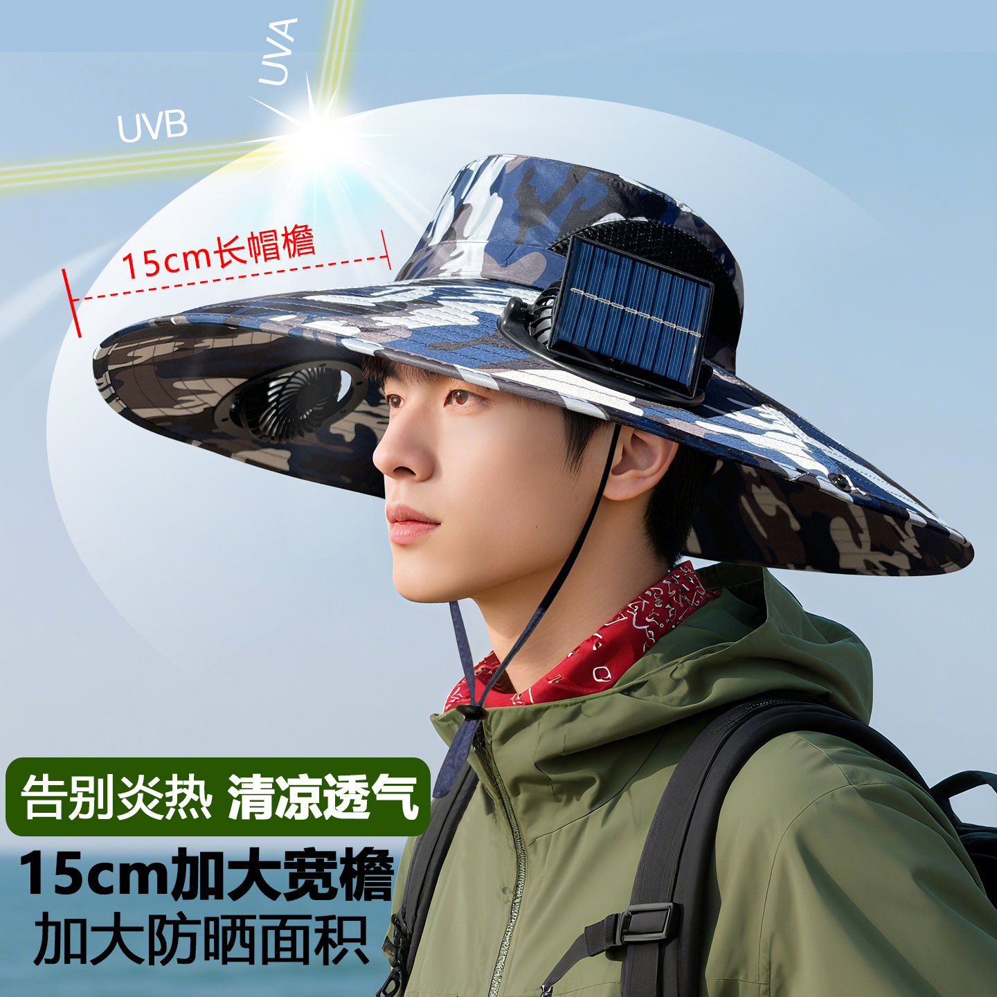 太阳能风扇遮阳帽户外防紫外线渔夫帽子男女登山帽防晒帽充电迷彩