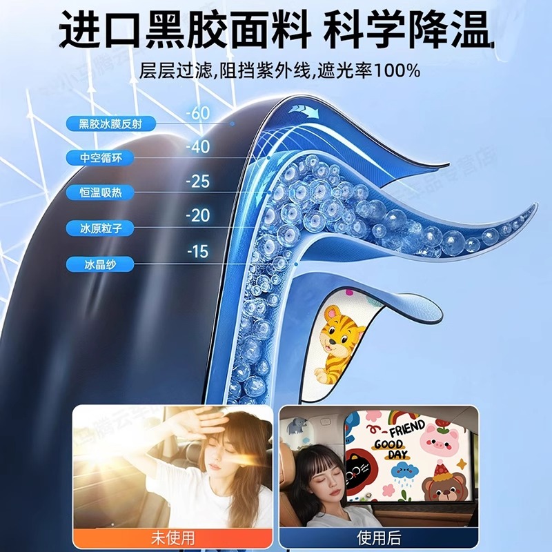 汽车窗帘车窗遮阳帘轨道式 小车内车载车用儿童宝宝侧窗防晒磁吸式
