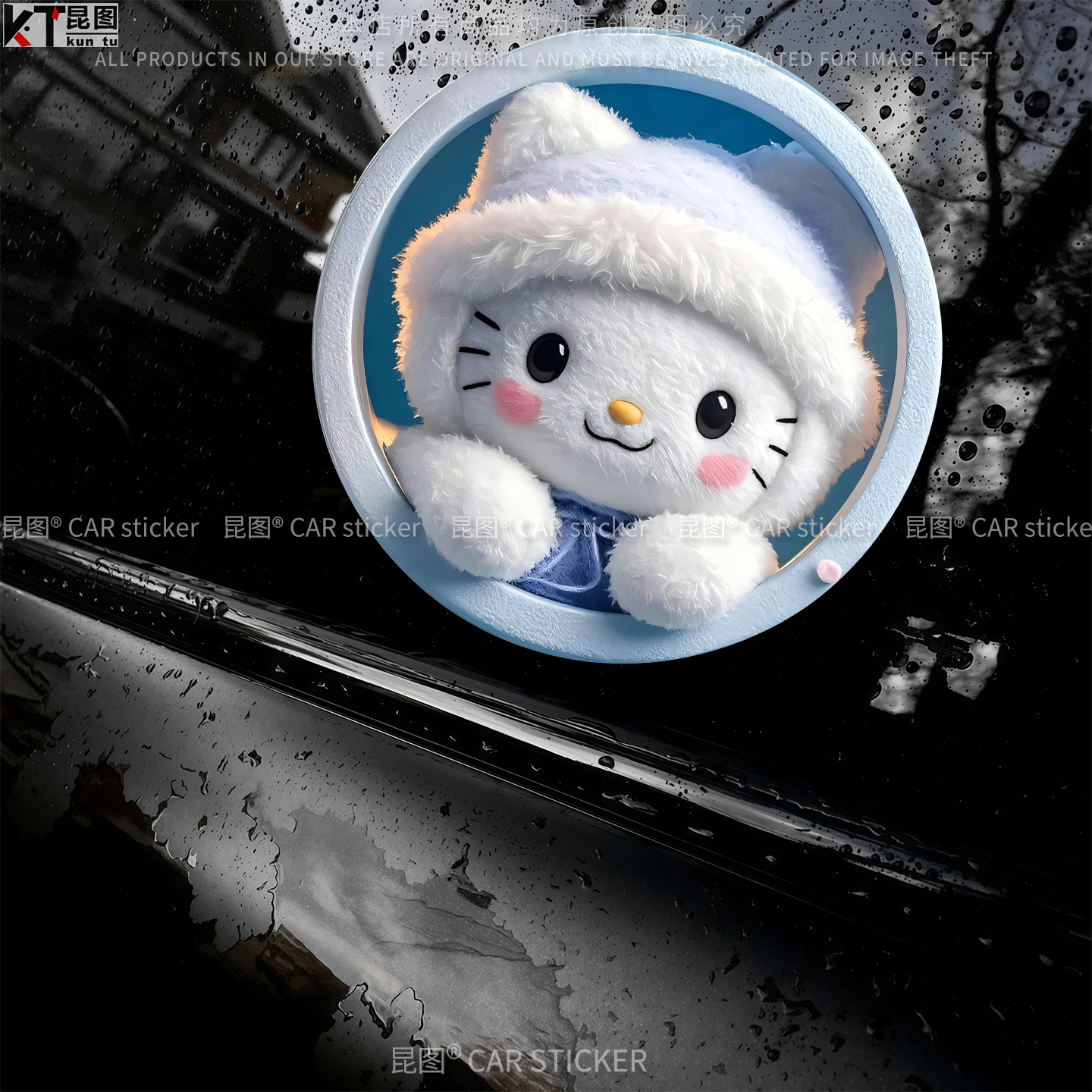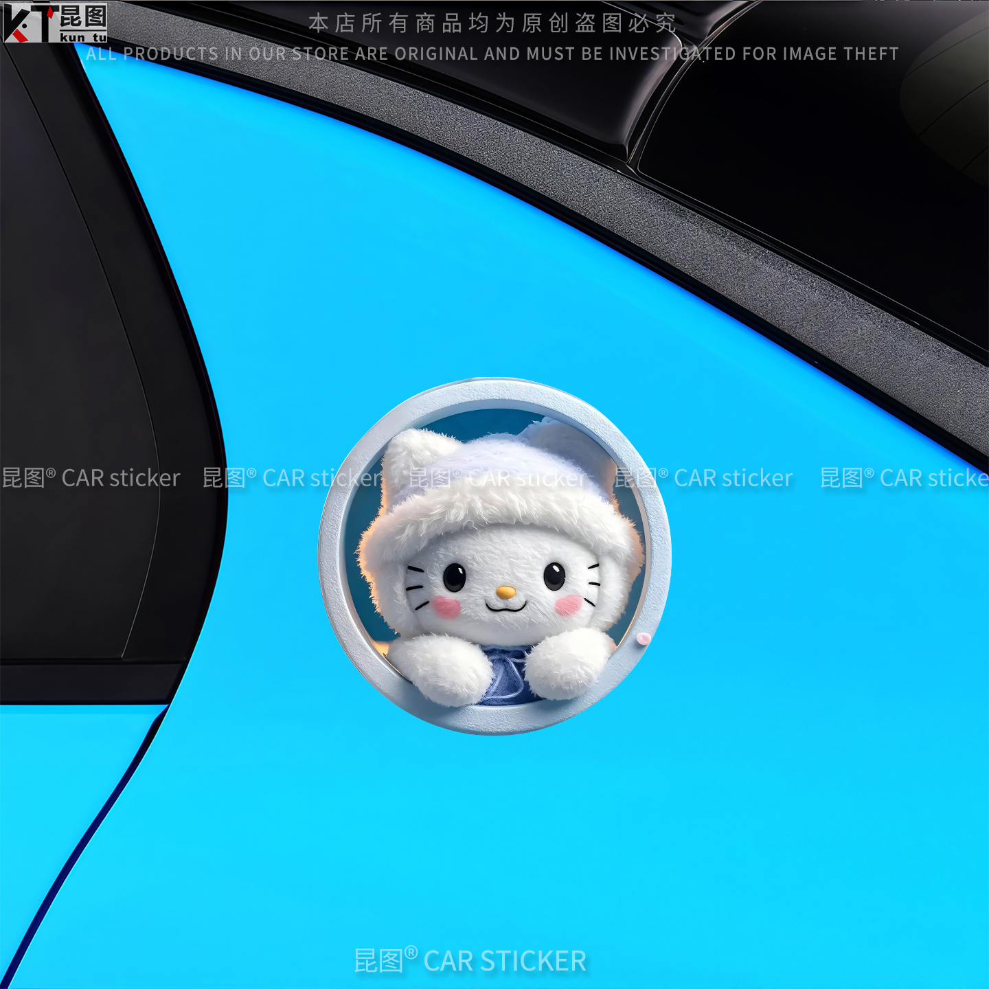 HelloKitty车贴KT猫汽车贴纸装 饰三角窗车身遮挡刮痕电动车行李箱