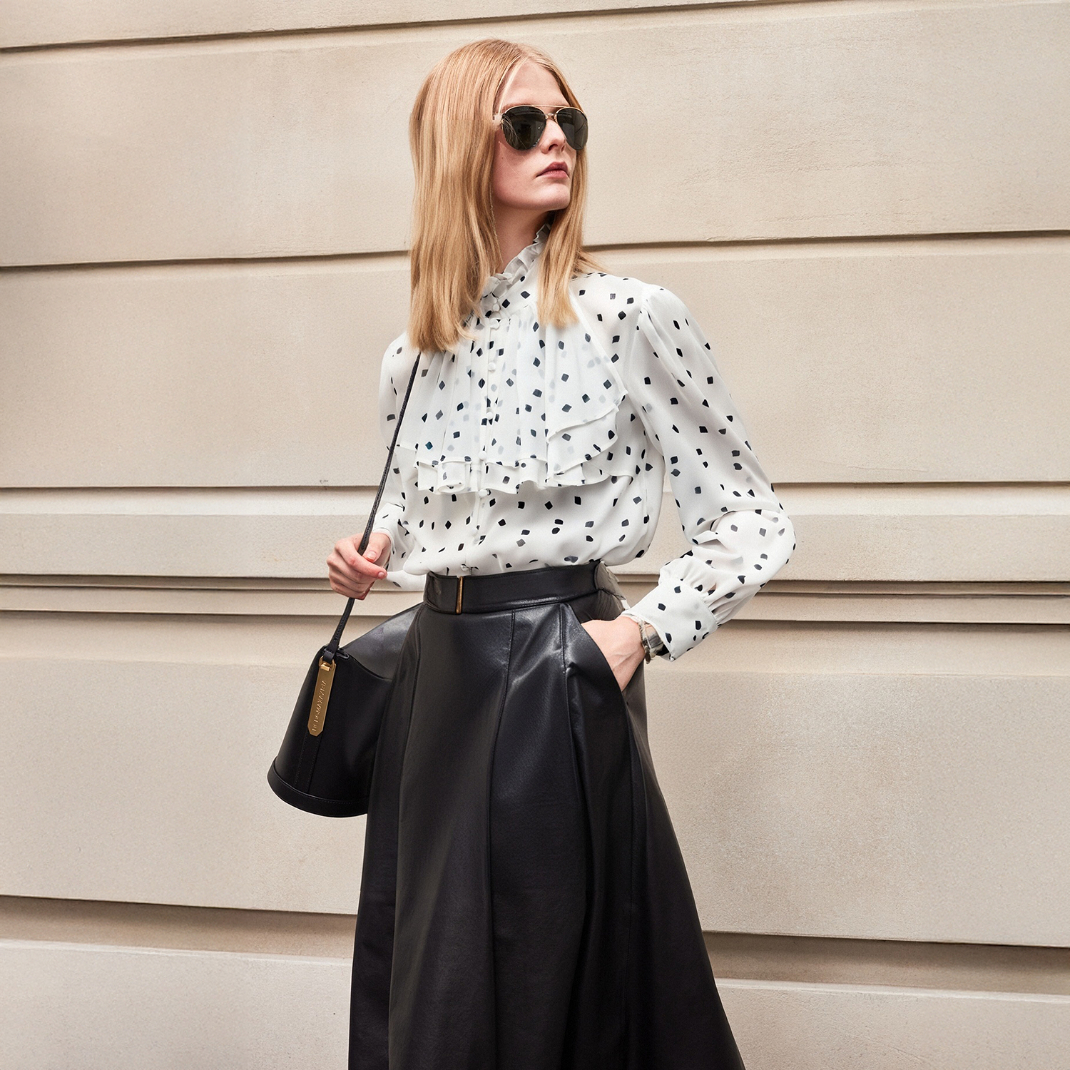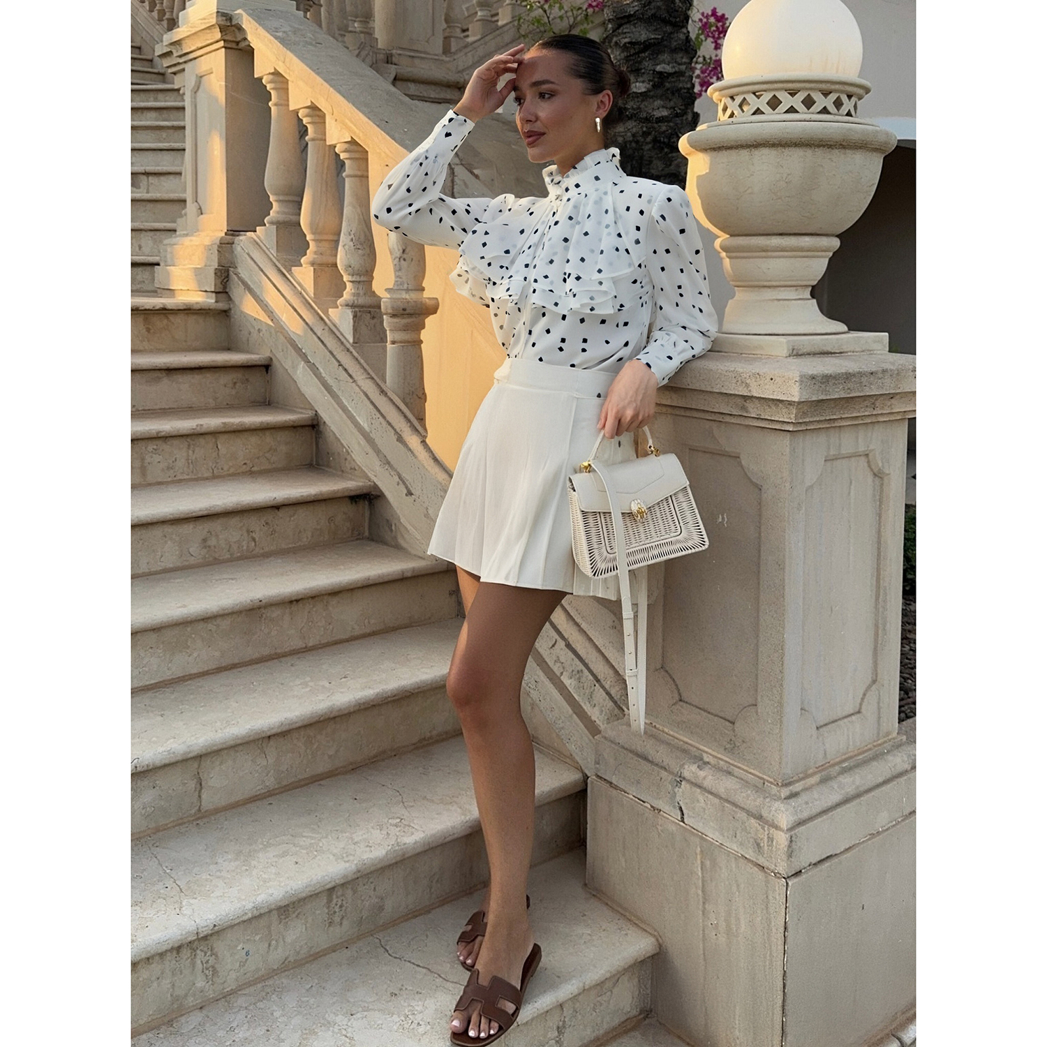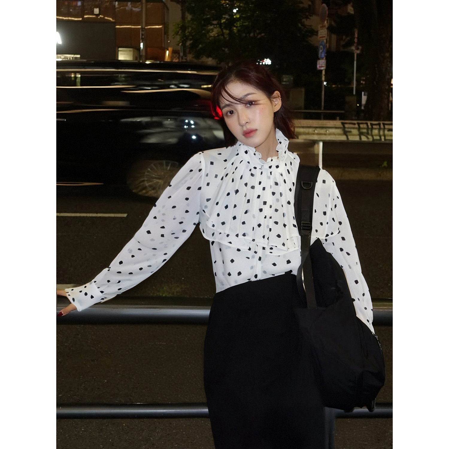 饰领女上衣外套衬衫 BCBG新款 精致优雅气质四叶草波点印花荷叶边装