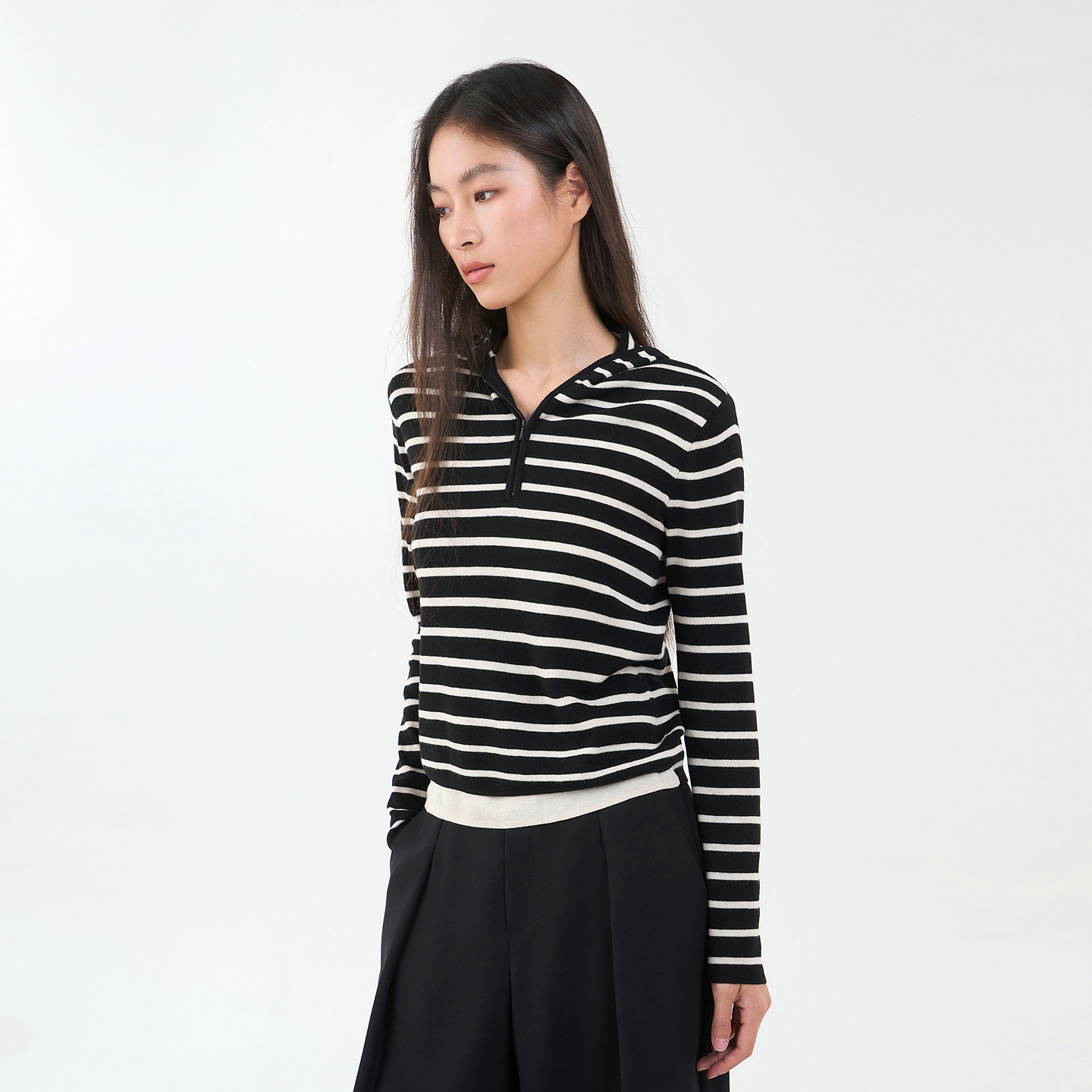 易菲半开针织条纹连帽卫衣宽松短款 Yifini 毛织上衣女 专柜同款