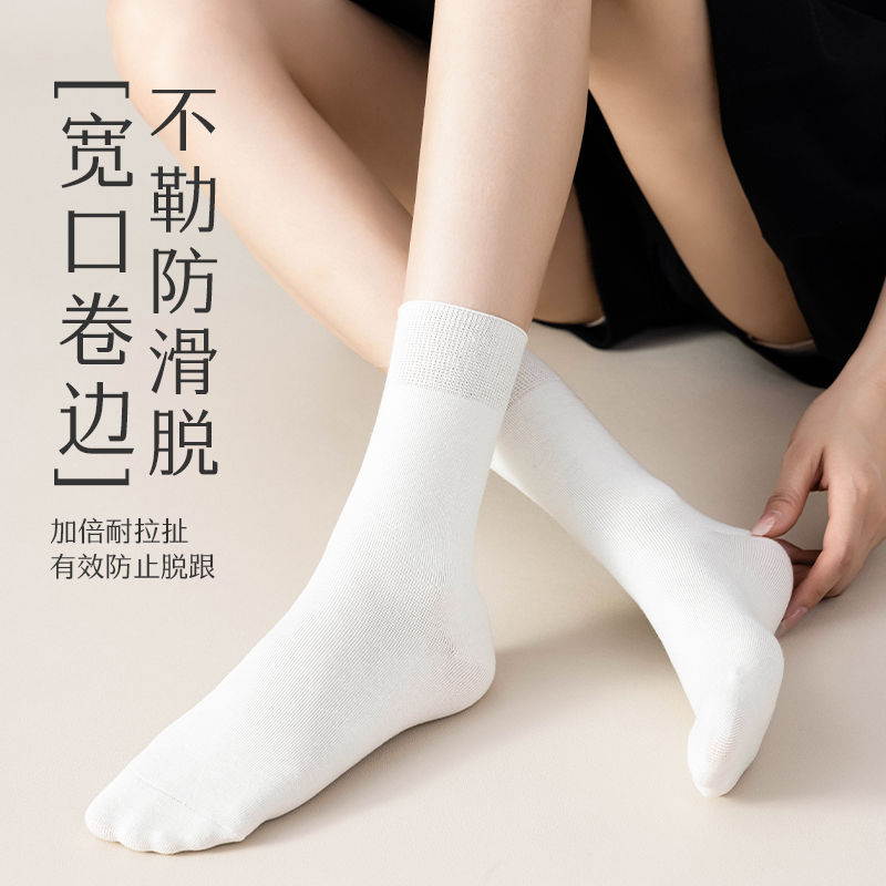 亲相见袜子女纯棉防臭中筒袜秋季 吸汗7a抗菌透气无骨白色女士短袜