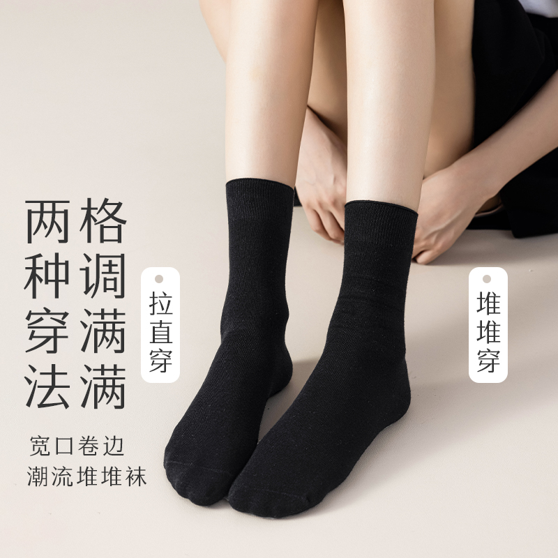 薄款 黑色袜子女中筒袜春秋季 堆堆长筒过膝袜jk压力瘦腿小腿袜夏季