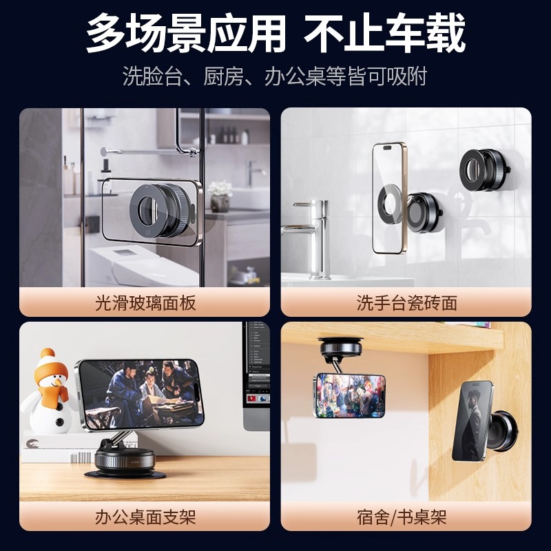 磁吸车载支架手机支架2025新款 magsafe真空吸附汽车导航专用吸盘旋转折叠便携浴室多功能桌面墙壁通用支撑