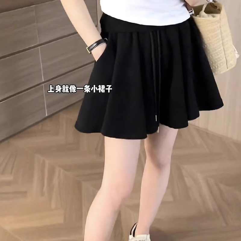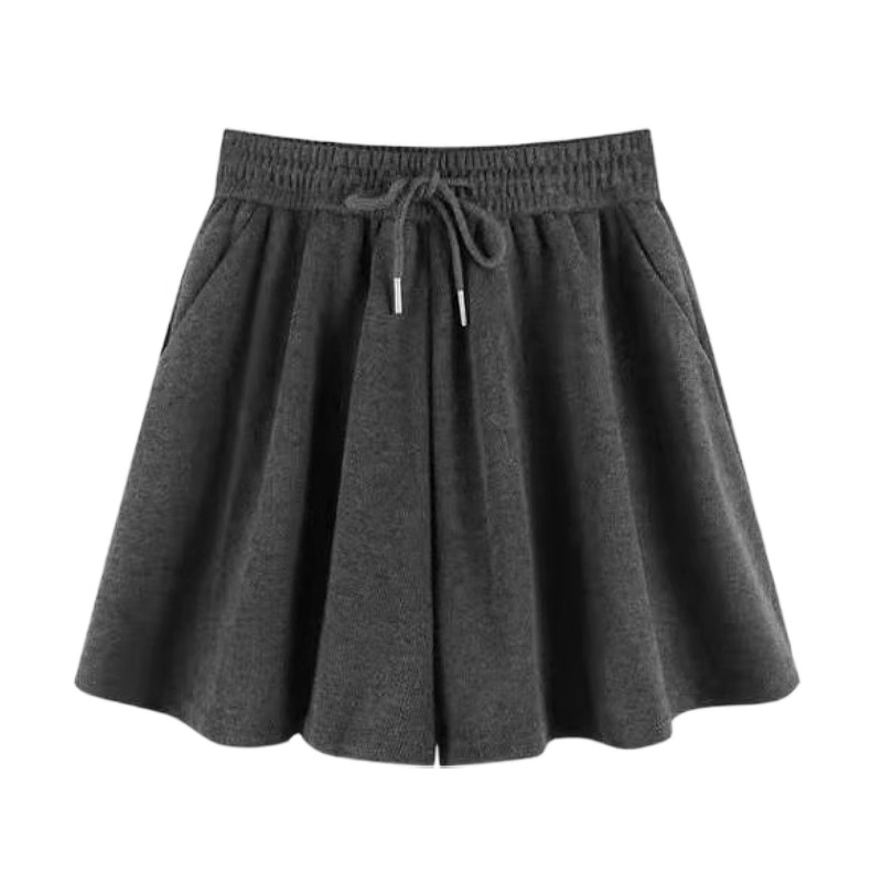 阔腿运动五分中裤 夏季 百褶裙裤 女灰色高腰宽松大码 芭蕾风瑜伽短裤